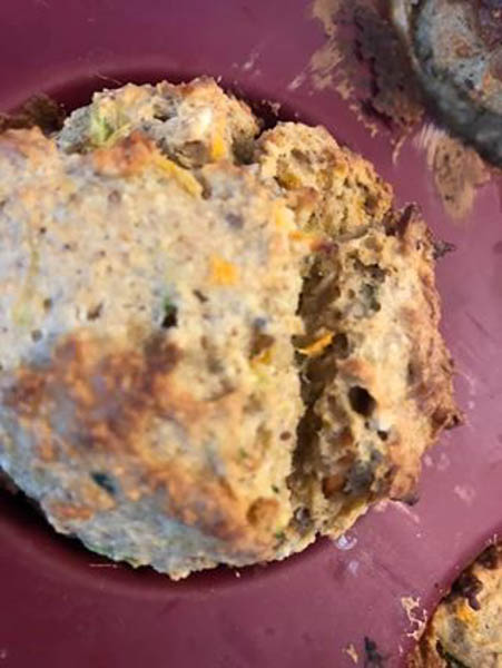 zucchini carrot Greek yogurt muffins with hemp hearts, chia, and flax. Made with oat flour and maple syrup