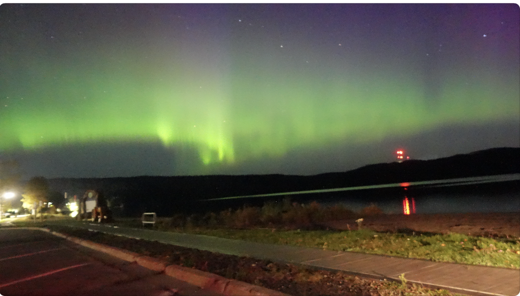 If I was mesmerized by the show Sunday morning – the show Sunday night, almost had me in tears watching the beauty that we were blessed with. There are not words nor did I have a lens that would encompass the entire sky. The lights were ribbons and bands that stretched all around and to the top of the sky. Simply breathtaking, and my photos do not do it justice.