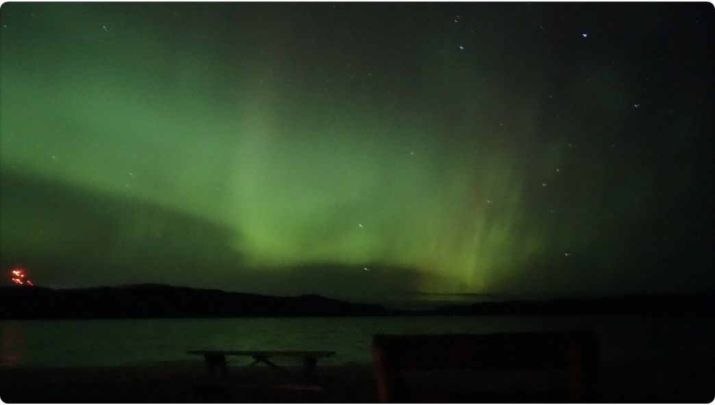 If I was mesmerized by the show Sunday morning – the show Sunday night, almost had me in tears watching the beauty that we were blessed with. There are not words nor did I have a lens that would encompass the entire sky. The lights were ribbons and bands that stretched all around and to the top of the sky. Simply breathtaking, and my photos do not do it justice.