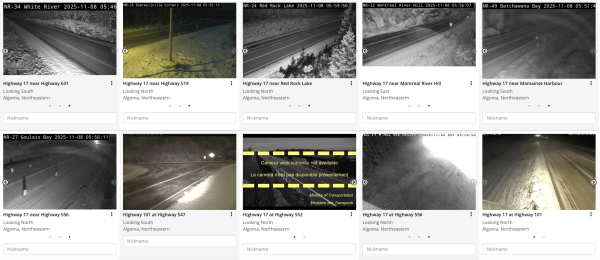 | Highway 17 | From Mijinemunghshing Lake to Wawa | Bare and dry road | Bare and wet road | Good | No | 2025-11-08 05:35 |