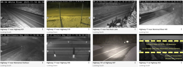 | Hwy 519 | Hwy 17 – Dubreuilville | Bare and dry road | Good | No | 2025-11-18 05:22 | |