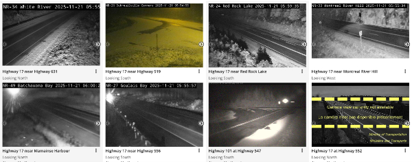 | Hwy 519 | Hwy 17 – Dubreuilville | Bare and wet road | Good | No | 2025-11-21 05:22 | |