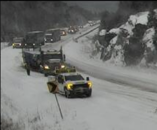 Traffic on the hill is beginning to move.It appears that some of the transports headed down the hill have moved. ‘Track my Plow’ on ON511 shows two plows working the hill.
