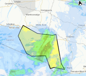 Additional information: Lake effect snow will be accompanied by southwesterly winds gusting up to 50 km/h. As a result, blowing snow will further reduce visibility. Travel along portions of highway 17 and highway 101 may be hazardous. Travel will likely be hazardous. Visibility will likely be suddenly reduced to near zero at times. Road closures are possible. Consider postponing non-essential travel and outdoor activities until conditions improve.