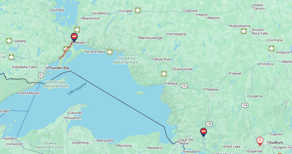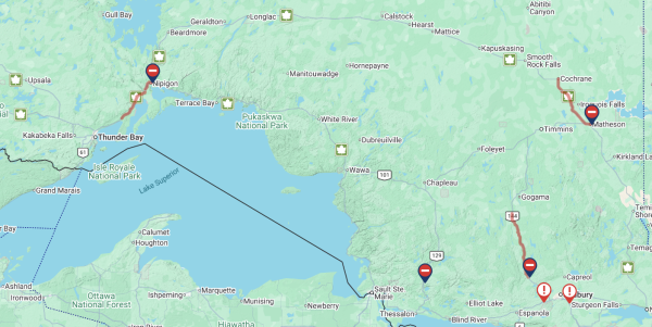 Wawa-news would add that if you are on the road and heading towards the road closures – be aware that you may not find accomodations, gas, food – in most northern Ontario towns there are little to no services available after 9 p.m.