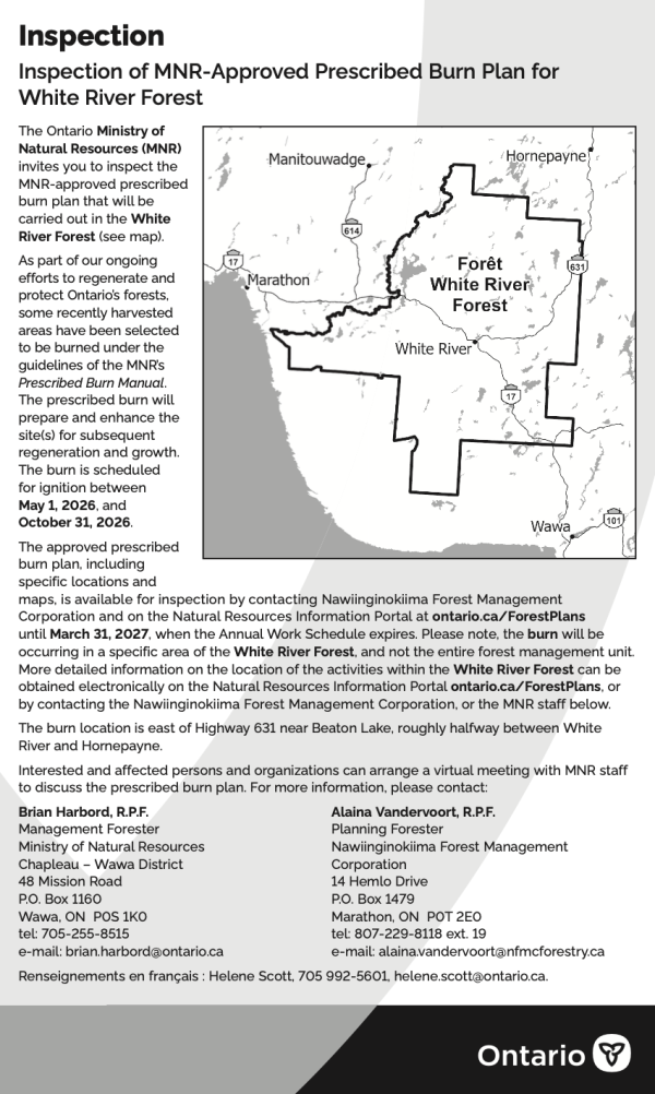 - Inspection of MNR-Approved Prescribed Burn Plan for White River Forest - April 1, 2026