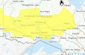 Upsala – Raith – Total snowfall accumulations of 15 to 25 cm. Reduced visibility in heavy snow.