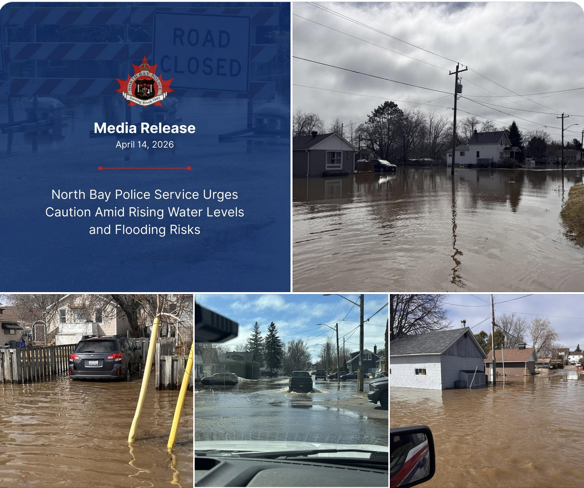 The North Bay Police Service (NBPS) is advising the community to exercise caution as recent rainfall and spring runoff are causing rising water levels and localized flooding throughout the area.