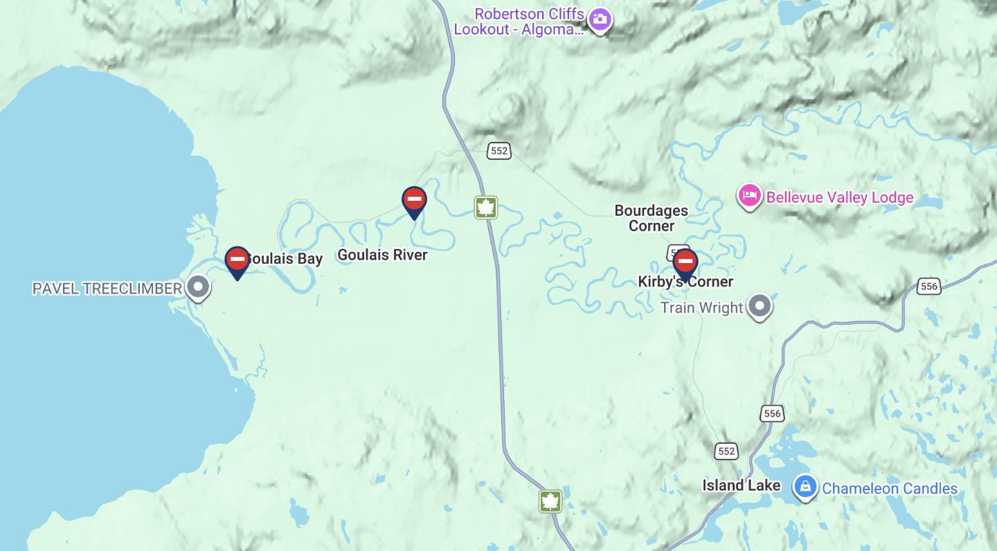 The flooding of the Goulais River has caused a number of road closures: