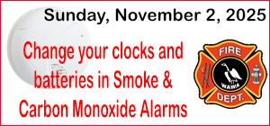Clocks will fall back one hour at 2 a.m. on November 2nd and the Wawa Fire Department is recommending residents install new batteries in their smoke and carbon monoxide alarms when they change their clocks.